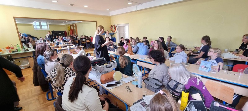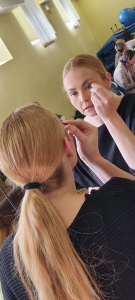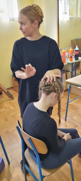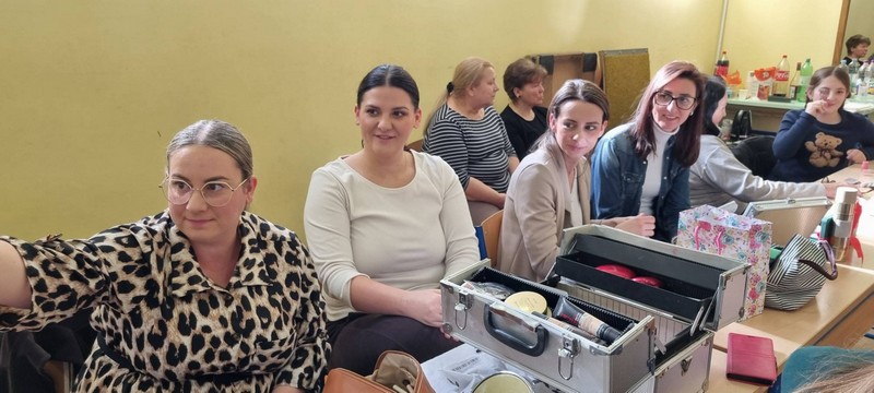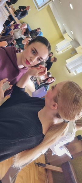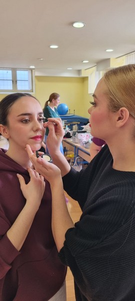 Drugi dio radionice bio je posvećen scenskom šminkanju. Iako su naše mlade članice mislile kako znaju sve, Anita ih je povela u sasvim neočekivanu avanturu gdje su spoznale koje su boje ruževa prihvatljive, kako dovoljno istaknuti oči,da rumenila nije nikad previše i sve one male ali bitne stvari koje pridonose vidljivosti plesača na sceni.