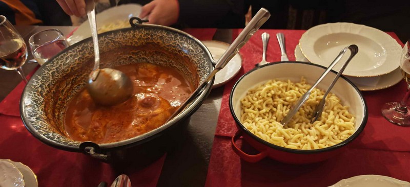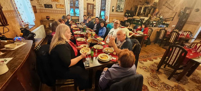 Nakon ove avanture nastavili su vozilima prema restoranu Darocz u Vardarcu, gdje ih je čekao centralni događaj ovog gurmanskog izleta. Naime ovdje su dogovorili bogat i obilan riblji menu, tradicionalan za Baranju, kako bi ugodno završili ovu gurmansku avanturu. Ručak je započeo fišem s domaćom tjesteninom za predjelo, za glavno jelo bila je riblja plata (som, smuđ, šaran na razne načine te faširke od štuke), za prilog bilo je povrće na maslacu i krumpir salata, za salatu dobili su miješanu salatu, a za desert domaće štrudle od jabuka i sira. Uz ručak su poslužili jedno piće i kavu za kraj, kako bi naši planinari što lakše svarili svu tu hranu. Sve navedeno donosili su u slijedovima uz pauze, tako da su dugo mogli uživati u ovoj ukusnoj hrani. U restoranu su se zadržali puna tri sata, a onda su nastavili prema Osijeku gdje su posjetili i ZOO vrt. Tijekom obilaska zoološkog mogli su upoznati hrpu egzotičnih i zanimljivih životinja, a to ih je dodatno oraspoložilo i dovelo do komičnih situacija. Po izlasku iz ZOO vrta Osijek, sjeli su u vozila i sretno se vratili kući.