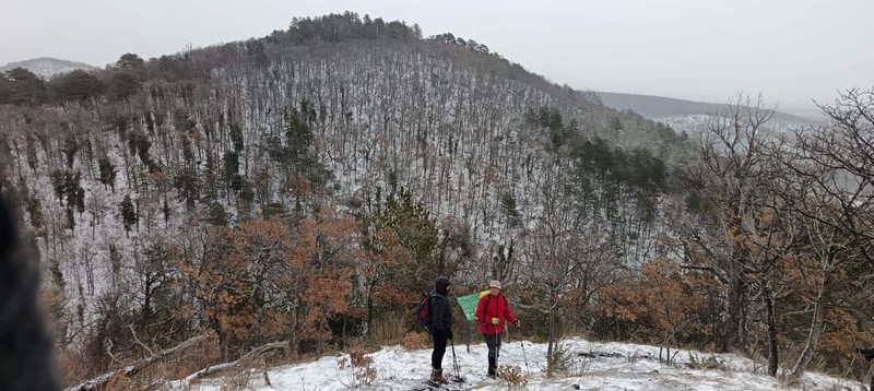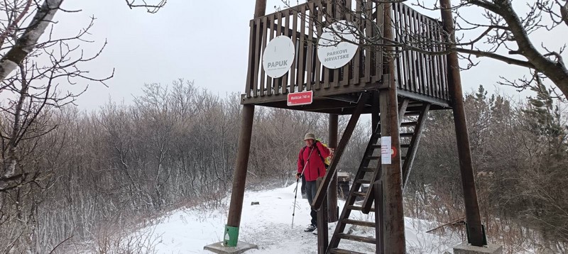 Nakon dolaska u Veliku, planinari su krenuli od crkve sv. Augustina prema Poljanicama, a zatim šumskom stazom prema južnoj terasi Papuka, poznatoj kao Zeusov tron. Snijegom prekrivena šuma, tišina i magla stvorili su gotovo filmsku atmosferu, a ekipa je unatoč zahtjevnim uvjetima napredovala u dobrom ritmu. Najveći izazov dočekao ih je kod planinarskog skloništa Mališčak na 734 metra nadmorske visine. Ondje su se planinari suočili s gotovo orkanskim vjetrom, koji je nanosio snijeg i stvarao pravi zimski ugođaj. Unatoč tome, raspoloženje nije padalo — kratki odmor, zaklon i zajednički duh bili su dovoljni da se ekipa okrijepi i nastavi dalje.
