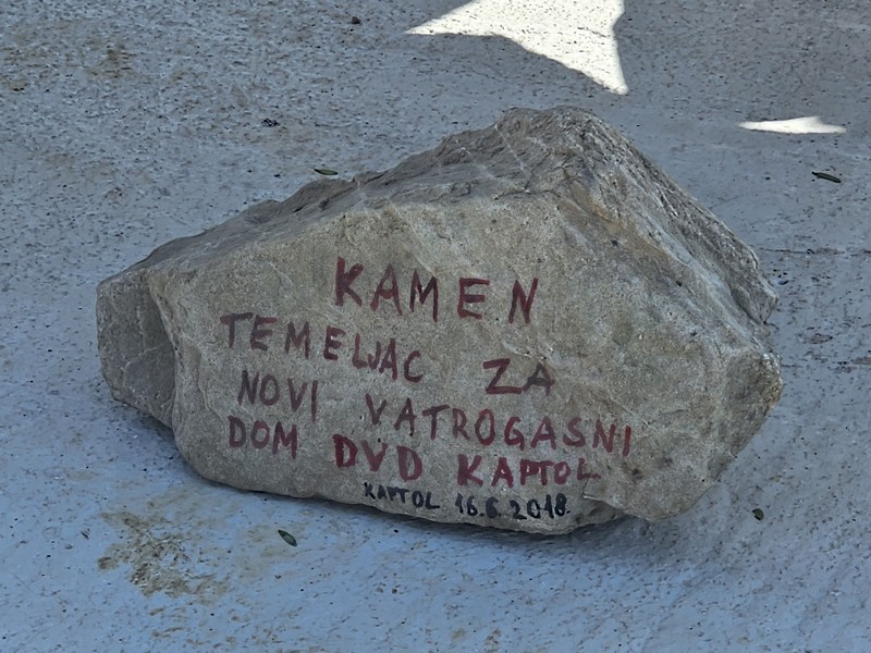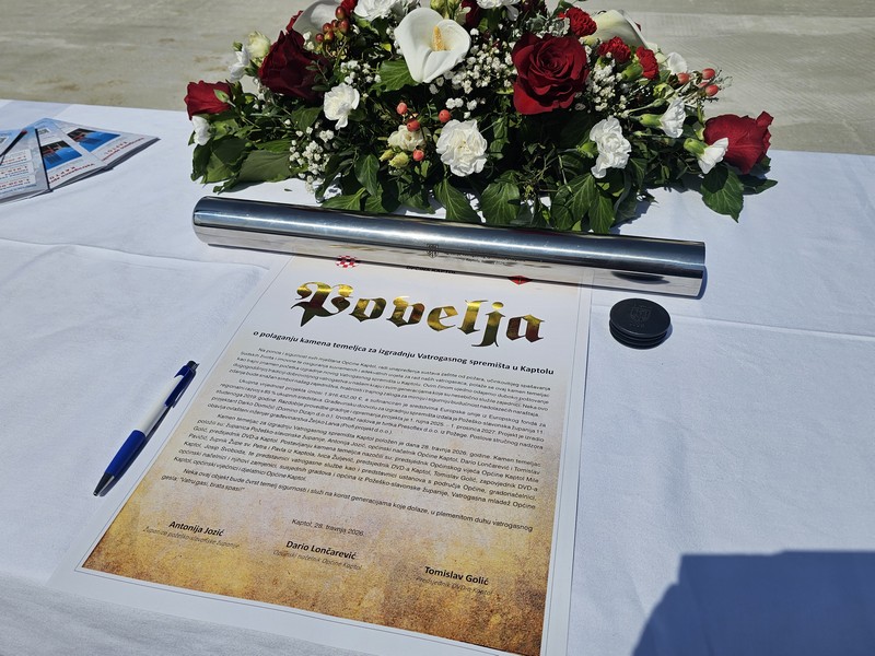 Povelju o izgradnji Vatrogasnog spremišta su potpisali, a potom i ubaciji u temelje objekta, predsjednik Golić, načelnik Lončarević i županica Jozić. Kamen temeljec pak, položili su najmlađi članovi DVD-a Kaptol. Gradilište je blagoslovio župnik Ivica Žuljević.
