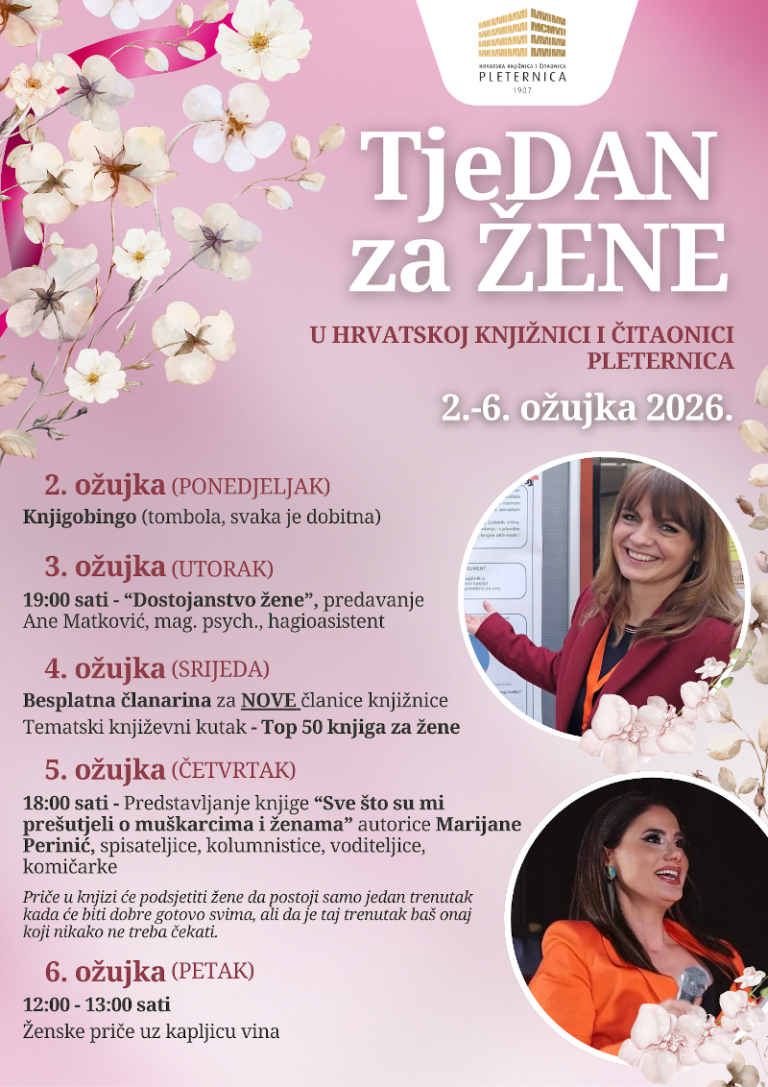Već tradicionalno Hrvatska knjižnica i čitaonica Pleternica organizira „TjeDAN za žene“ povodom Međunarodnog dana , koji se obilježava svake godine 8. ožujka.