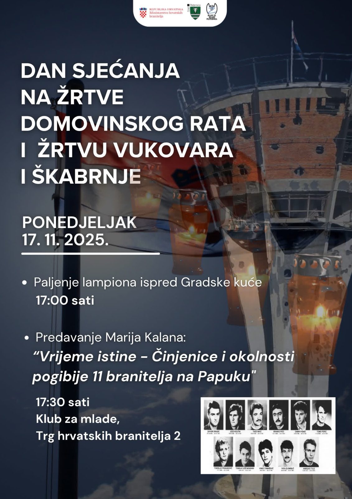 Uoči Dana sjećanja Udruga „Mladi za mlade” Pleternica organizirala je paljenje lampiona u središtu grada a potom i predavanje. U klubu mladih umirovljeni bojnik Mario Kalan je govorio na temu „Vrijeme istine – Činjenice i okolnosti pogibije 11 branitelja na Papuku“.