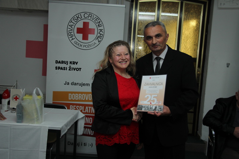 Hrvatski Crveni križ Gradsko društvo Crvenog križa Požega upućuje iskrene čestitke svim dobrovoljnim davateljima krvi povodom 25. listopada Dana dobrovoljnih davatelja krvi, te izraze iskrene zahvalnosti za plemenitost i humanost koju su do sada iskazali u solidarnosti sa svima kojima je njihova krv bila neophodno potrebna. Svim dobrovoljnim davateljima krvi želimo dobro zdravlje i puno sreće uz osobni uspjeh u životu – istakli su u čestitci, a Gradsko društvo Crvenog križa Požega upriličilo je i prijem za sve višestruke darivatelje krvi i zahvalnicama, zlatnim značkama i prigodnim poklonima nagradilo sve uz 25. listopada Dan dobrovoljnih darivatelja krvi.