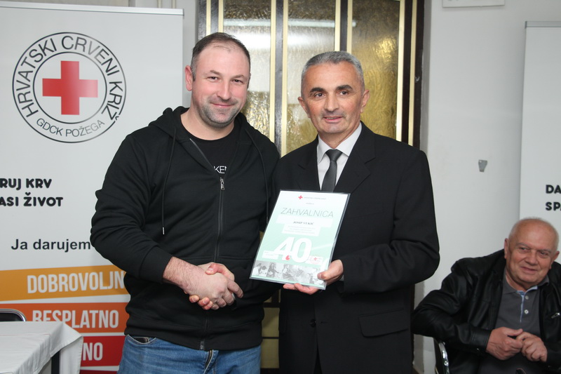 Na početku je čestitke svim darivateljima krvi povodom njihovog dana uputio predsjednik GD CK Požega dr. sc. Borislav Miličević, istaknuvši njihovu hrabrost i požrtvovnost u humanitarnoj gesti koju svakodnevno daju. Istaknuo je da ga i veseli što ima sve više mladih ljudi koji postaju, ali i ostaju stalni darivatelji krvi. Ti mladi ljudi već su dosegnuli brojke od 40-tak i više dobrovoljnih darivanja krvi.