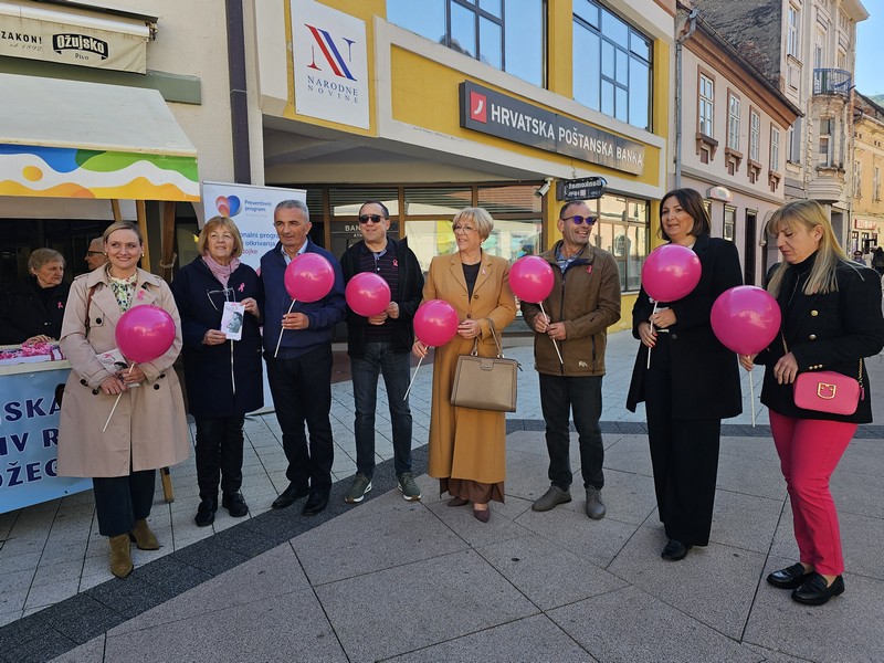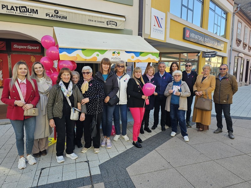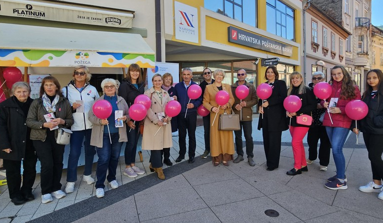 Zavod za javno zdravstvo Požeško-slavonske županije, Liga protiv raka Požega i Klub žena operiranih na dojci Požega, obilježili su danas u požeškoj pješačkoj zoni “Dan ružičaste vrpce” i “Mjesec borbe protiv raka dojke”. Svojim dolaskom akciju su podržali i županica Antonija Jozić kao i gradonačelnik prof.dr.sc.Borislav Miličević.