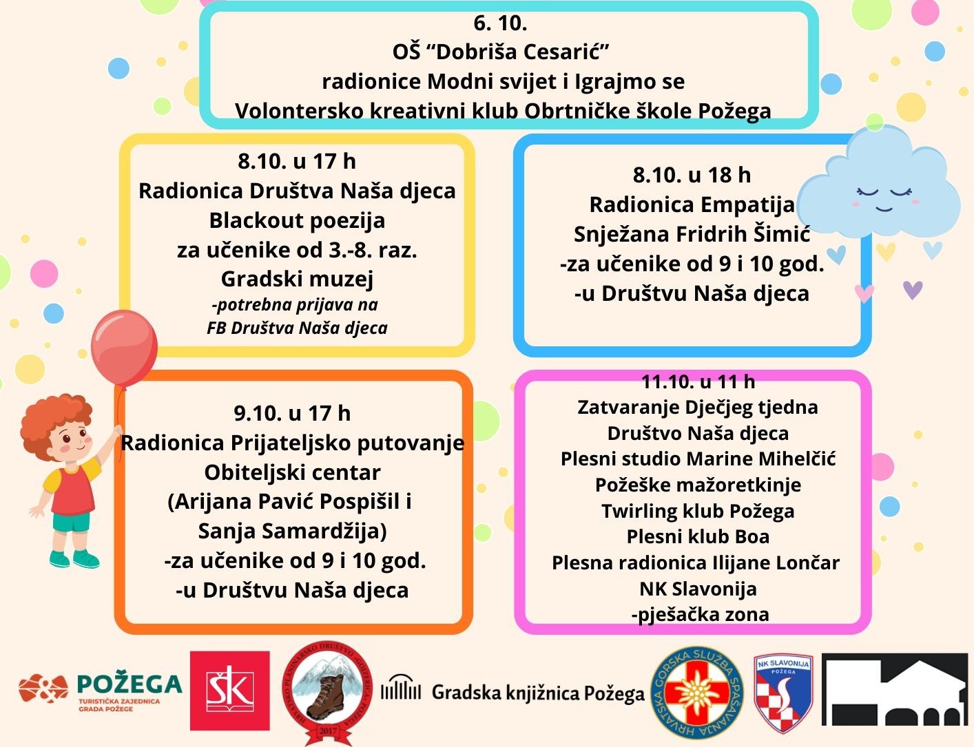 Zatvaranje Dječjeg tjedna u Požegi održat će se u subotu 11. listopada, prigodnim programom u požeškoj pješačkoj zoni od 11 sati.