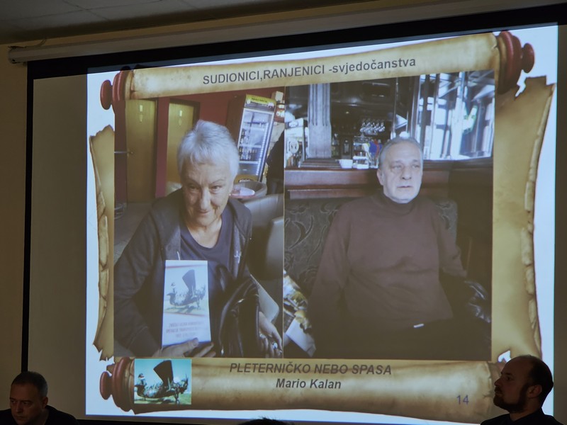 Na predstavljanju knjige „Pleterničko nebo spasa”, osim autora, govorili su ravnatelj knjižnice Josip Šebalj, gradonačelnica Marija Šarić, izaslanik potpredsjednika Vlade i ministra hrvatskih branitelja,umirovljeni brigadir Željko Kalić te recenzenti dr.sc. Natko Martinčić i mag. hist. Zdeslav Španiček. Na kraju predstavljanja knjige Irena Kalan je izrecitirala svoju pjesmu „Čovjekom biti“.