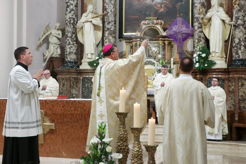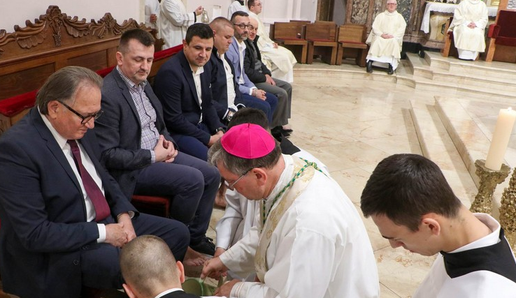 Na Veliki četvrtak biskup Ivo Martinović u zajedništvu sa svećenicima iz središnjih biskupijskih ustanova i Župe sv. Terezije predvodio je u požeškoj Katedrali Misu večere Gospodnje.