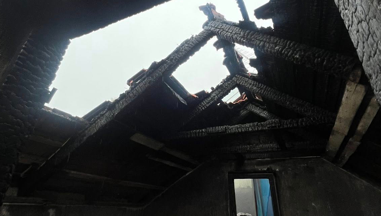 Očevidom je utvrđeno da je do požara došlo na način da je uslijed loženja vatre došlo do zapaljenja grede koja je djelomično prolazila kroz dimnjak te se vatra proširila na cijelo drveno krovište.