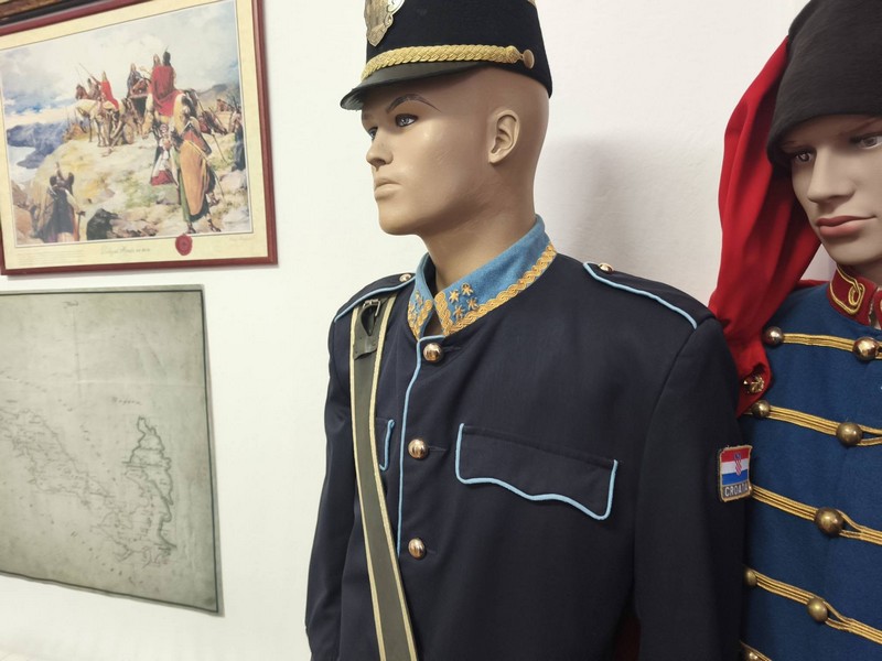U prvoj su prostoriji Muzeja izložene odore povijesnih postrojbi Varaždinske građanske garde, Turopoljskih banderija, Karlovačke građanske garde, Kumpanjije iz Blata s otoka Korčule, Počasno-zaštitne bojne a sada evo, i Gradske straže Požega.