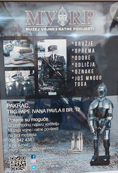 Odora Gradske straže Požega odnedavno je izložena u Muzeju ratne i vojne povijesti u Pakracu. Riječ je o jedinom muzeju ovakve tematike u Hrvatskoj i u njemu se mogu vidjeti eksponati vezani za hrvatsku, a dijelom i za svjetsku vojnu i ratnu povijest. Stalni postav od preko 300 m2 podijeljen je na nekoliko cjelina, a u njegovu sklopu je i knjižnica, arhiva, suvenirnica, projekcijska dvorana te vanjski izložbeni prostor.